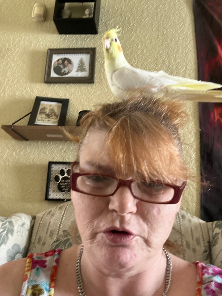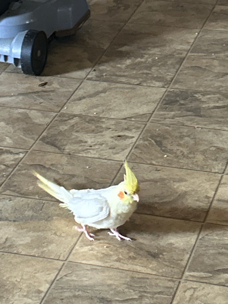 Let me introduce you to my yellow cockatiel named Wicca! She is about three years old now, which makes the oldest bird in my house. Honestly, Wicca likes to sit quietly in her cage until she’s ready to sing or talk. Additionally, she loves to get out of her cage and sit on my head.